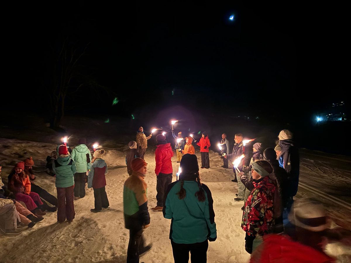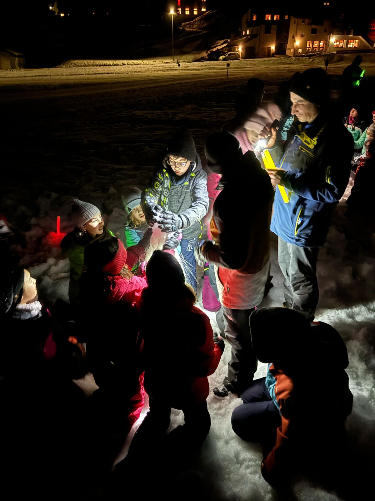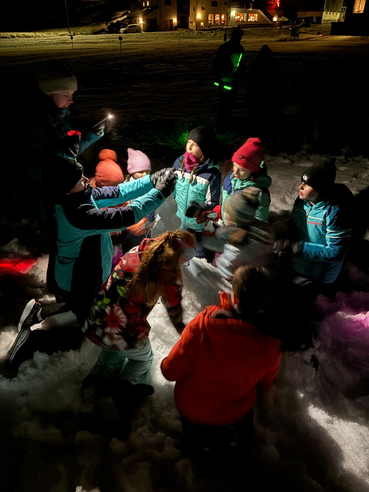 Am Abend war es endlich soweit: Die Olympischen-Schneelager-Spiele standen auf dem Programm! Mit Eifer wurden Schneetürme errichtet, bei Staffelrennen Punkte gesammelt und zielsicher um die Wette geschossen. Es war ein grossartiges Spektakel voller Ehrgeiz und natürlich einer gehörigen Portion Spass!