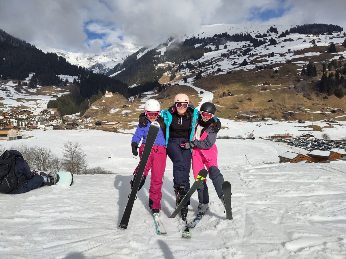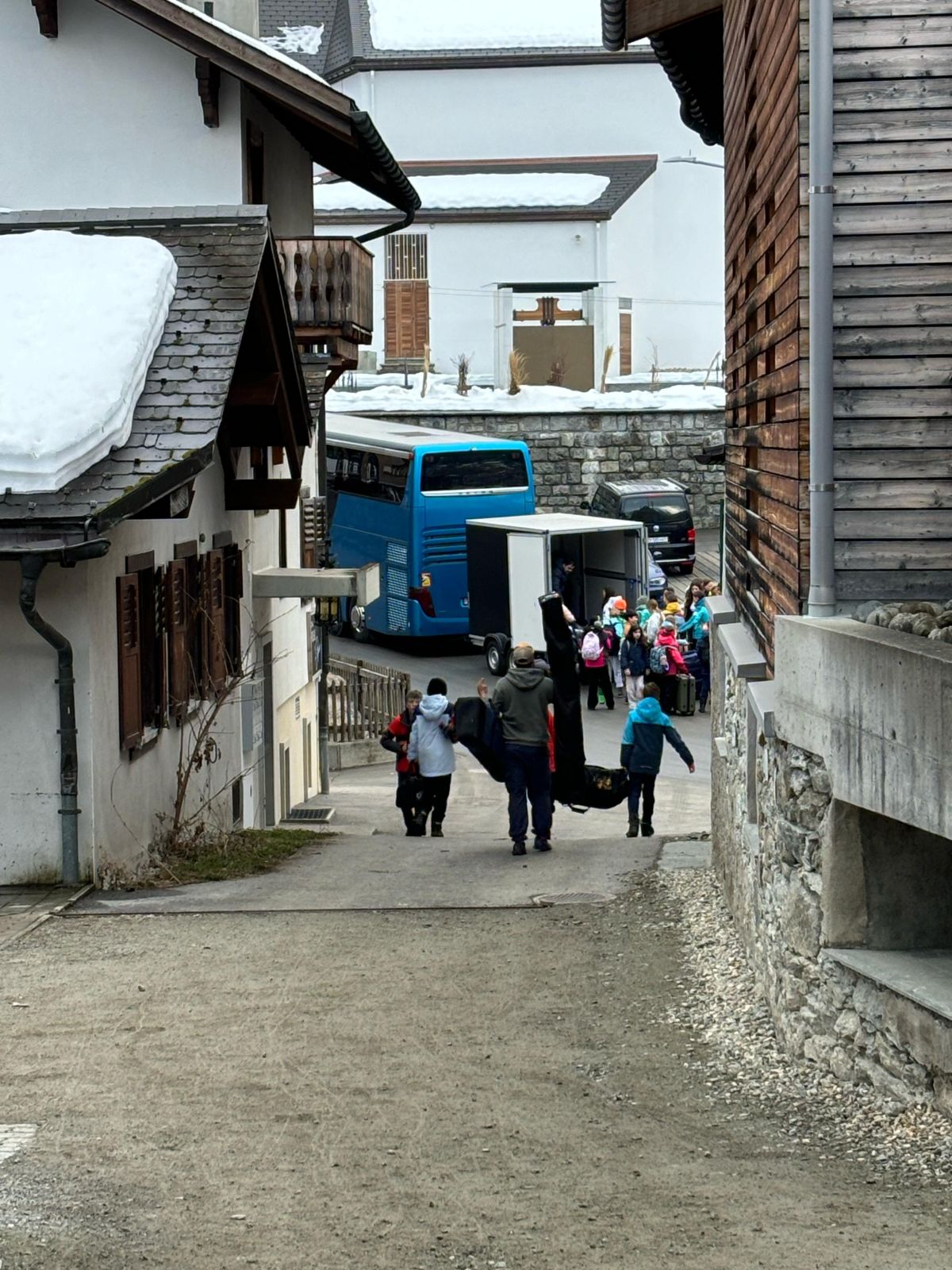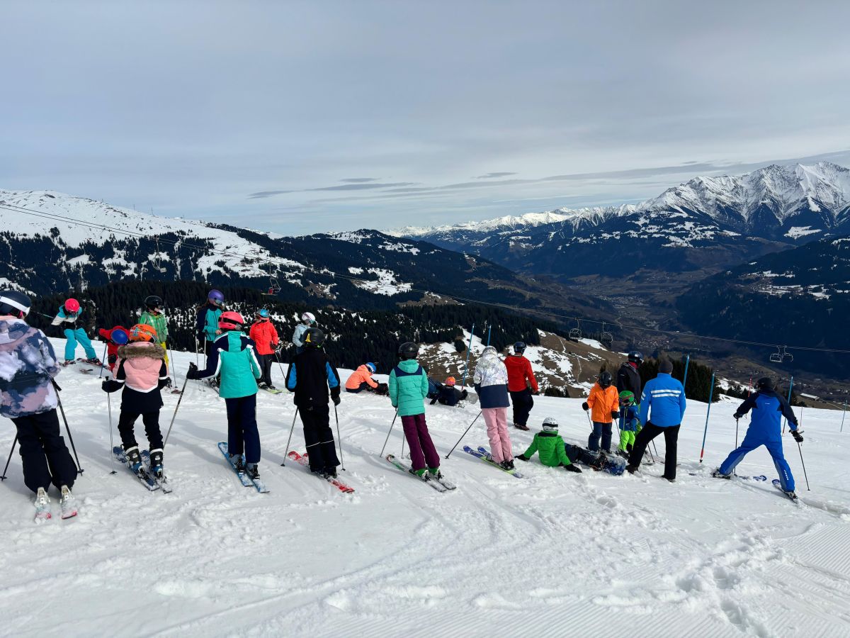 Der Car war bis zum Rand gefüllt und wir erreichten alle wohlbehalten und in bester Laune Brigels. Glücklicherweise gab es noch ausreichend Schnee, um die Talabfahrt fahren zu können. Diese Aussicht erfreute nicht nur die Kinder, sondern auch die Leiter*innen.
