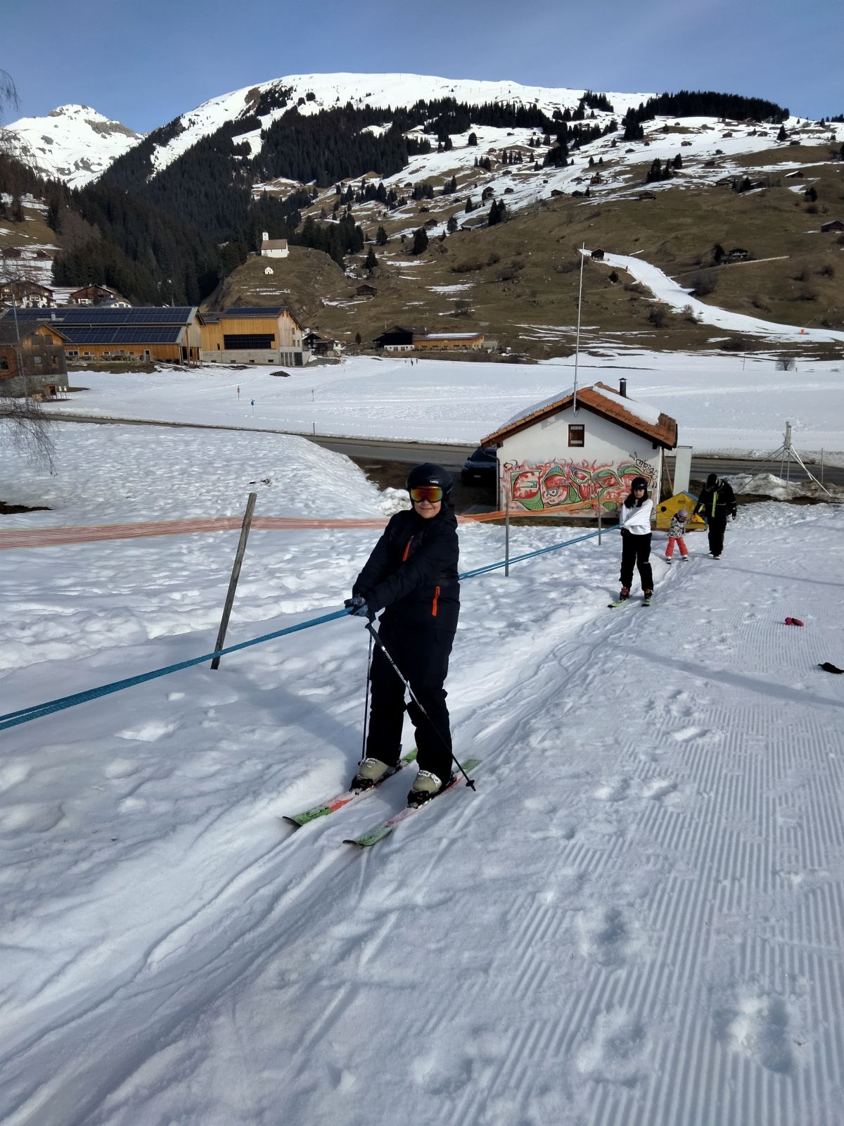 Nach einem köstlichen Mittagessen, das uns mit neuer Energie versorgte, machten wir uns voller Tatendrang auf den Weg zu den Pisten. Während einige ihre ersten Schwünge direkt vor unserem Lagerhaus wagten, zogen andere schon mutig den Berg hinauf, bereit für neue Abenteuer im Schnee.